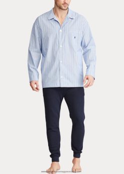 csíkos pamut pizsama ing 2680481651 férfiak Ralph Lauren andrew stripe/cruise haditengerészet