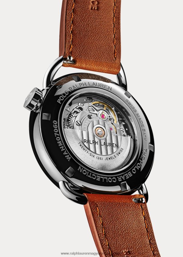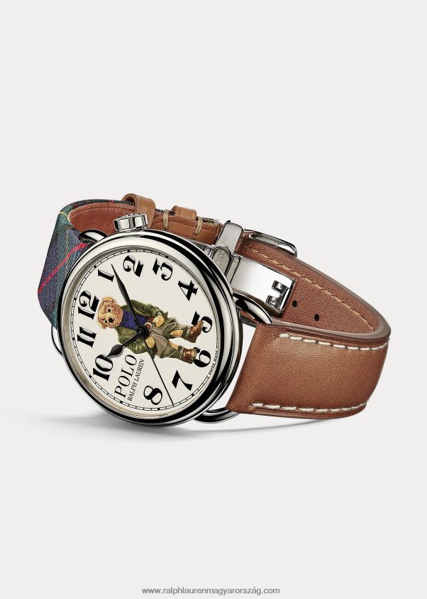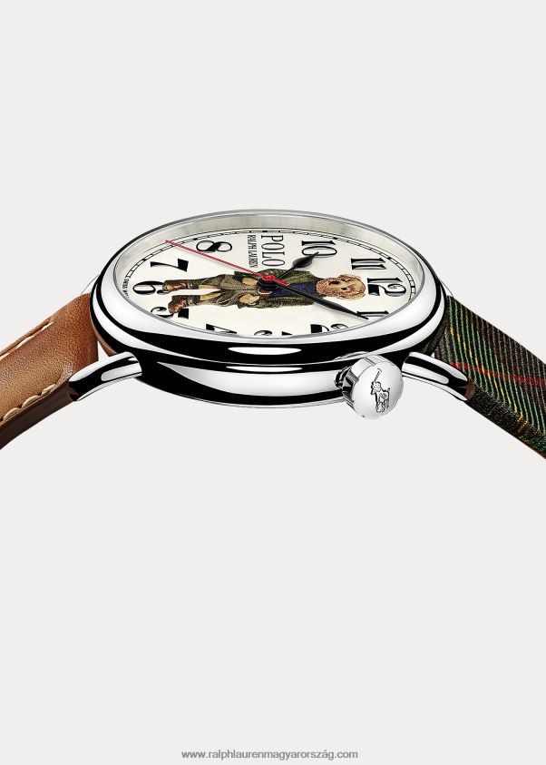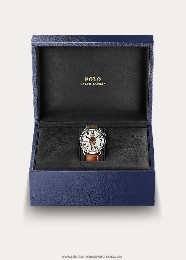 A póló medve órakollekció egyesíti a svájci óragyártás ősi hagyományait egy ralph lauren világából származó, szeretett ikonnal. ebben a kollekcióban minden medvét ralph lauren saját öltözködési módja és időtlen dizájnjainak jellegzetes témái ihlettek. ebben a modellben a póló medve tweed sportkabátot, lovagló jodhpurt és garbós pulóvert visel – ez a megjelenés tökéletesen megragadja Ralph Lauren angol ihletésű kastélyának eleganciáját Bedfordban, New Yorkban.