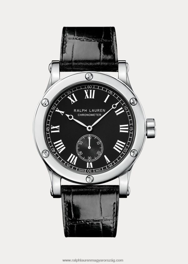 A klasszikus dizájn és a kiváló sportos funkcionalitás tökéletes kombinációja, a 45 mm-es kronométer acélunk a ralph lauren férfi luxuskollekcióinak elegáns esztétikáját hatja át. A fényes, fehér római számokkal díszített, merész, matt fekete galvanikus tárcsával, a másodperces segédórával, a nyomtatott vasúti stílusú percpályával és a stílusos, breguet-stílusú mutatókkal ez a polírozott acél kronométer erőteljes kijelentést tesz. luxus aligátorszíjjal kiegészítve ezt a vízálló órát egy cosc-tanúsítvánnyal rendelkező rl366 kaliberű öntekercselő mechanikus szerkezet hajtja. ez a svájci gyártású óra precíz teljesítményt nyújt, és megtestesíti a ralph lauren hagyományt, amely szerint újragondolt egy vintage dizájnt a modern érzékenységgel.