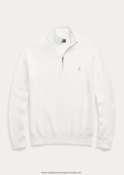 hálós kötött pamut negyedcipzáras pulóver 268048511 férfiak Ralph Lauren fedélzetmosó fehér