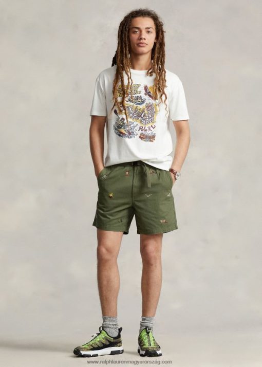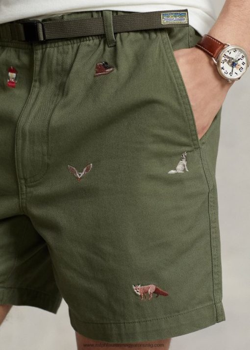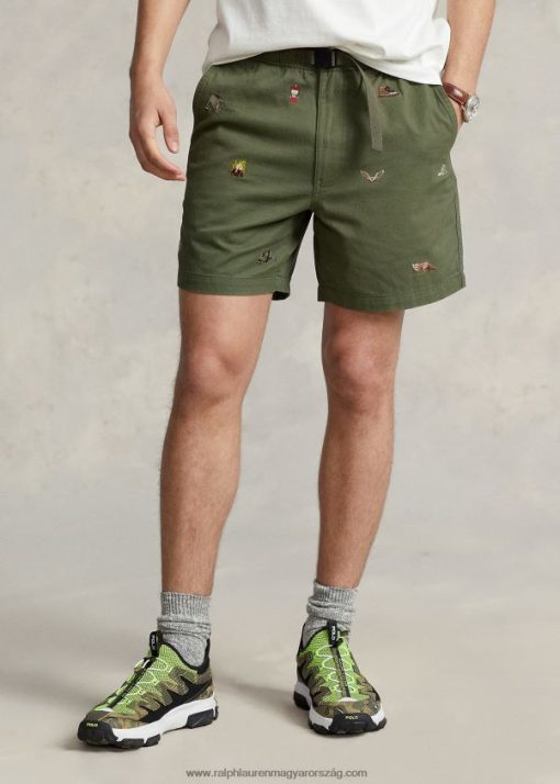 6 hüvelykes hímzett twill túranadrág 268048903 férfiak Ralph Lauren sötét zsálya