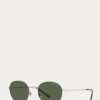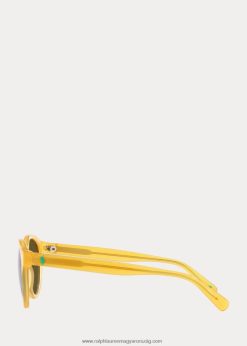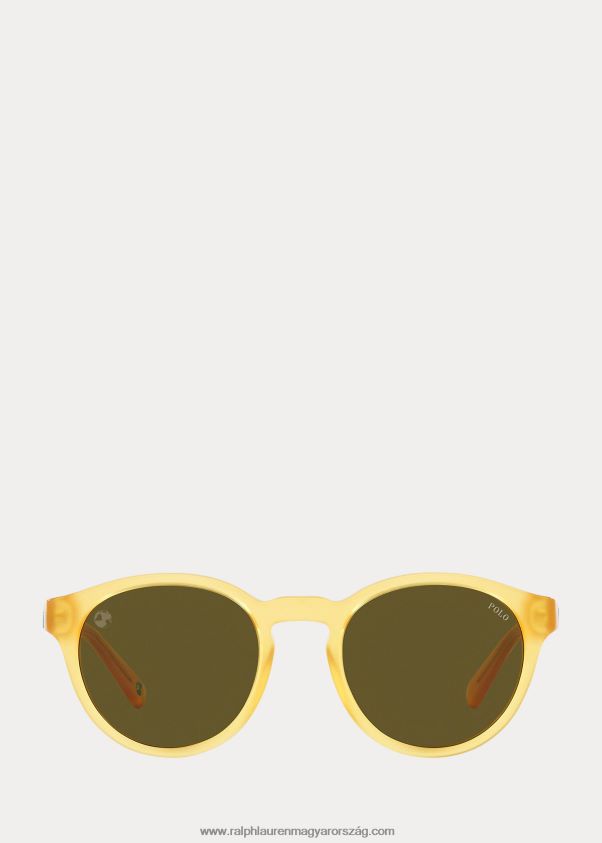 A polo ralph lauren bio-alapú anyagokból készült új szemüvegkollekciójának része, ezek a panto napszemüvegek a halántéknál zöld színnel díszített jellegzetes pónikat tartalmaznak.