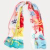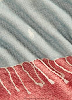 Ez a csavart rojtokkal szegélyezett pamut sál mindenütt absztrakt motívumokkal rendelkezik, és jellegzetes, hímzett pónink ékezi ki.