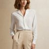 A könnyű, légáteresztő lenvászonból készült adrien ing idei sorozata megtalálja az ikonikus ralph lauren egyensúlyt a férfiruházati ihlet és a modern nőiesség között. Olaszországban készült, ez az ing a szezon festői trópusi motívumával van nyomva – egy tekintélyes como, olaszországi malom archívumából vett mintát.
