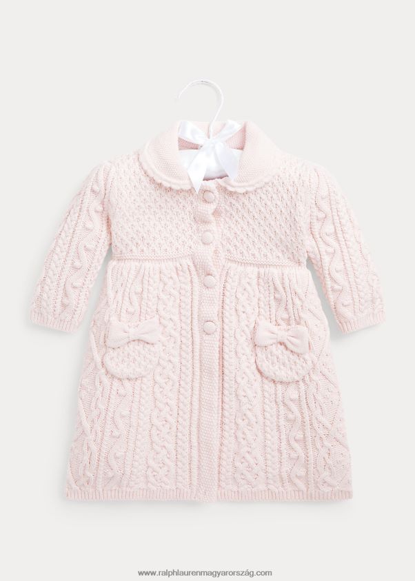 arán kötésű masnis pamutkardigán 2680488009 baba Ralph Lauren finom rózsaszín