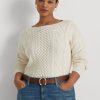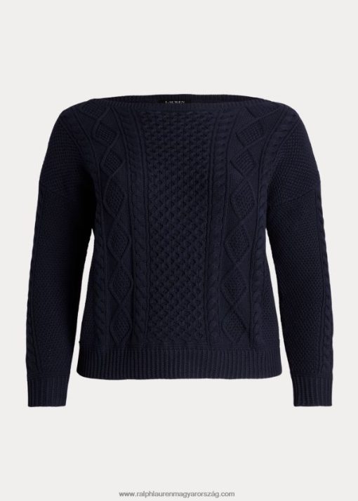 arán kötött pamut csónaknyakú pulóver 2680484590 nők Ralph Lauren kifinomult haditengerészet