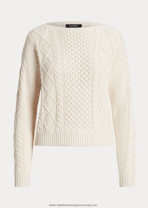 arán kötött pamut csónaknyakú pulóver 2680484826 nők Ralph Lauren mascarpone krém