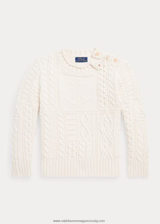 arán kötött pamut nyakú pulóver 2680486539 gyerekek Ralph Lauren birtok krém