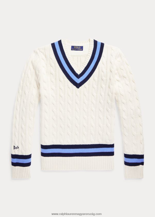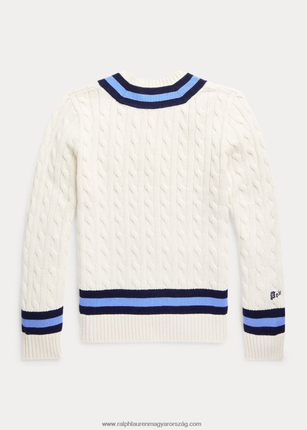 az ikonikus krikett pulóver 2680486166 gyerekek Ralph Lauren krémszínű, sötétkék csíkkal