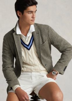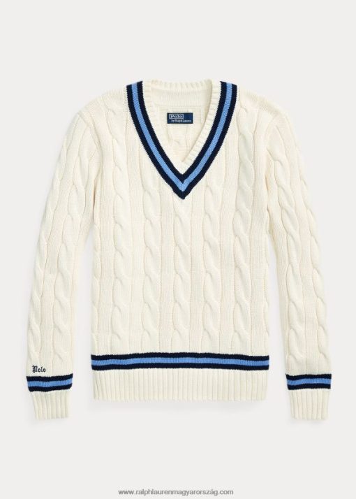 az ikonikus krikett pulóver 2680488380 férfiak Ralph Lauren krémszínű, sötétkék csíkkal