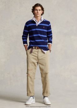 klasszikus szabású csíkos jersey rögbi ing 268048831 férfiak Ralph Lauren royal navy/deckwash fehér