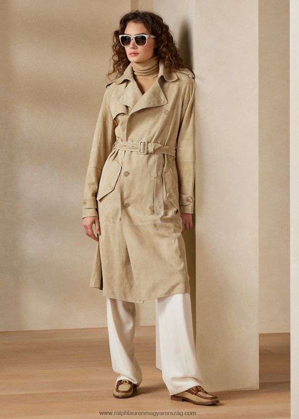 baird bárány-velúr trench kabát 2680483558 nők Ralph Lauren halvány méz