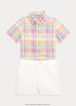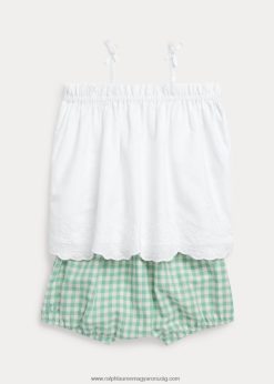 fűzőlyukú pamut felső és gingham rövid szett 2680487776 baba Ralph Lauren fedélzetmosó fehér
