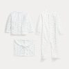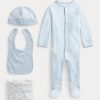 Ez a prémium biopamutból készült interlock készlet kifordítható kabáttal és talpas kezeslábassal rendelkezik, amelyek gyönyörűen vannak elhelyezve egy koordináló borítéktáskában, amely személyre szabható az Ön által választott monogrammal vagy kezdőbetűkkel.
