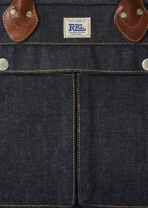 Indigófestett farmerből készült, amely használat közben idővel kifakul. ””hosszú r’rrl” felirat az elején. bőr fogantyúk és kárpitok. párnázott laptop tok a belsejében. saját bélésű. sárgaréz cipzár körbecipzározható nyílással, így a táska laposan fekhet. szorult réztónusú szegecsek.