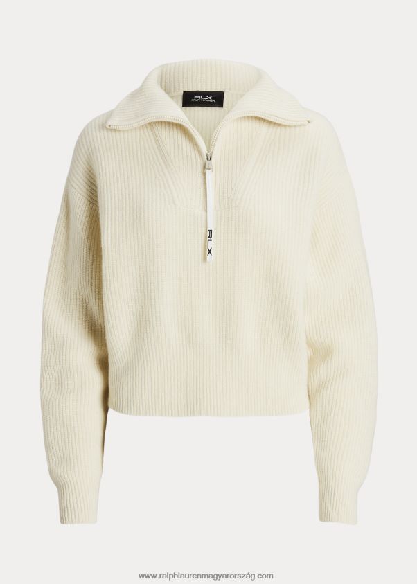bordás kötésű kasmír-gyapjú félcipzáras pulóver 2680483133 nők Ralph Lauren pergamen krém