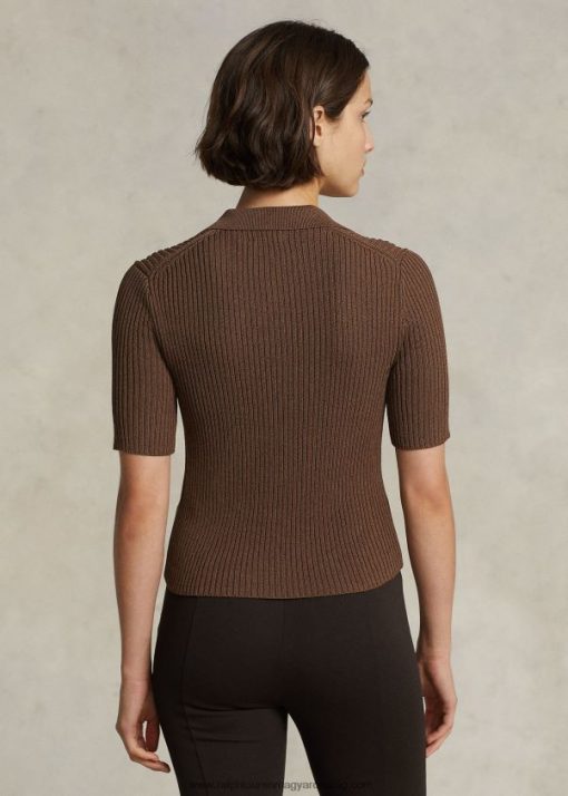 bordás kötésű rövid ujjú pólókardigán 2680483185 nők Ralph Lauren csokoládébarna