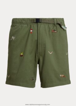 6 hüvelykes hímzett twill túranadrág 268048903 férfiak Ralph Lauren sötét zsálya