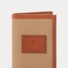 A póló oroszlán-pajzs címerét hímezték ennek a vékony tűhegyes kártyatoknak az elején, amelynek hátulja teljes bőrből készült.