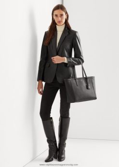 crosshatch bőrből készült nagy, Clare táska 2680485430 nők Ralph Lauren fekete
