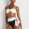 A modern színblokkolás és a csavart előlap határozza meg ennek a bandeau bikinifelsőnek a fényűző stílusát. párosítsd a hozzáillő színű, blokkolt alsónkkal, hogy tetszetős öltöny legyen.