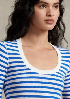csíkos bordázott gombóc póló 2680483055 nők Ralph Lauren fehér/fürdő királyi