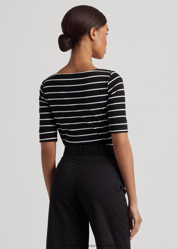 csíkos csónaknyak felső 2680484272 nők Ralph Lauren fekete-fehér