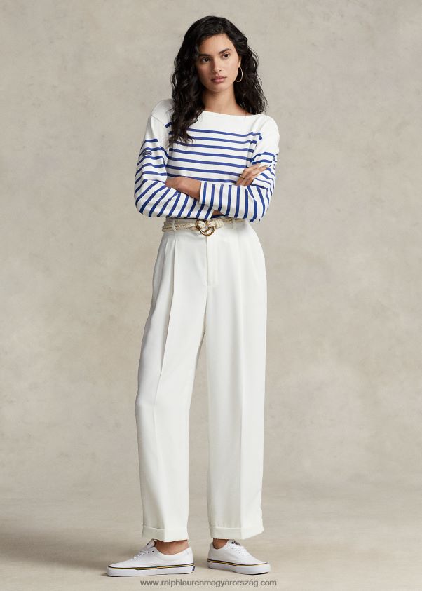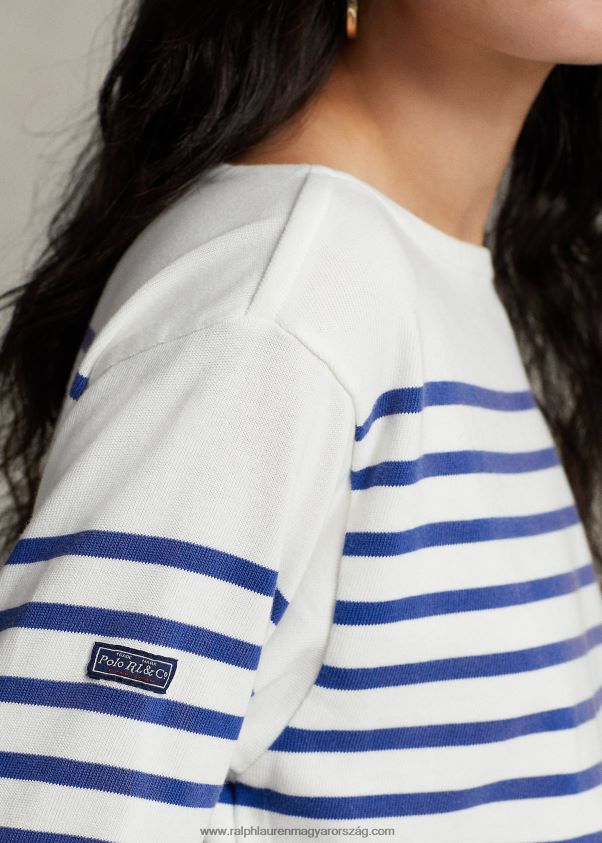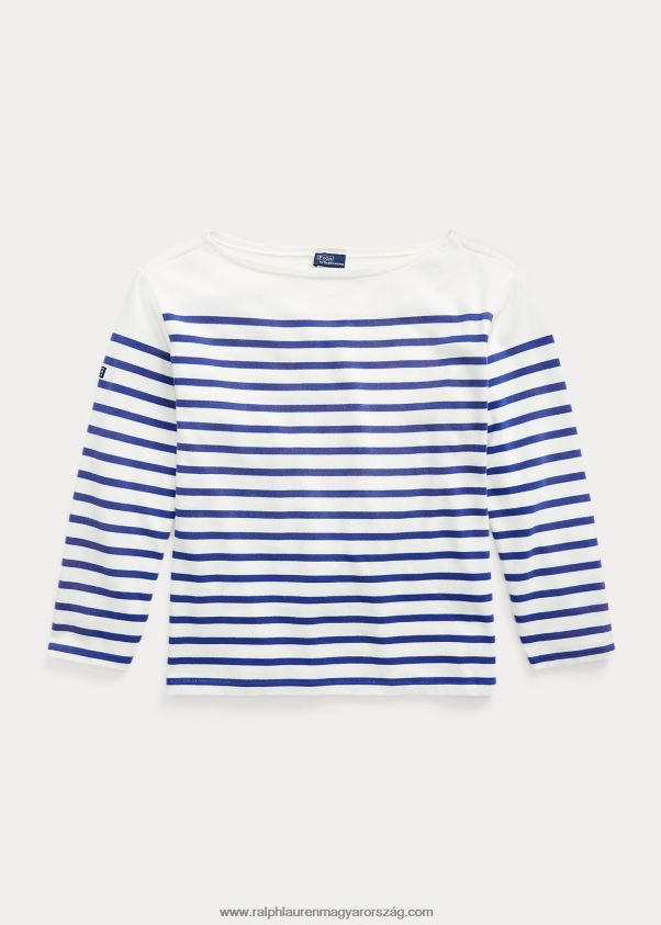 csíkos csónaknyakú jersey póló 2680483162 nők Ralph Lauren deckwash fehér/zafír