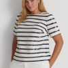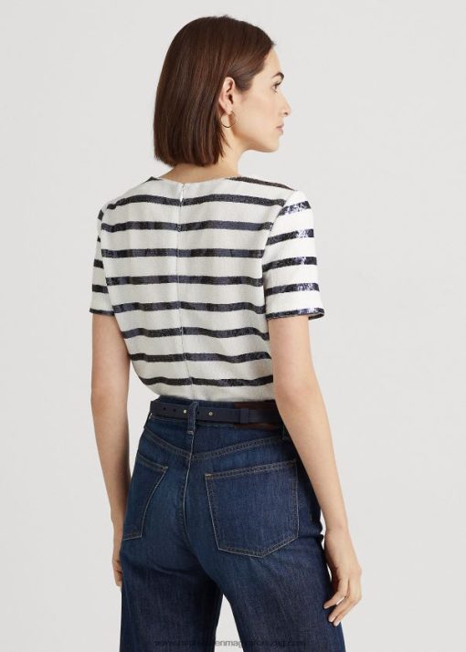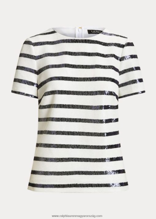 csíkos flitteres rövid ujjú blúz 2680484846 nők Ralph Lauren fehér/rafinált sötétkék