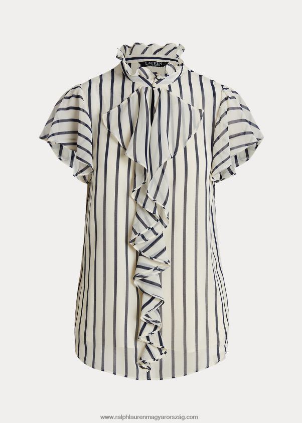 csíkos fodros szegélyű sifonblúz 2680483993 nők Ralph Lauren pergamen krém/tengerészet