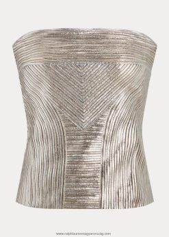 csíkos fodros szegélyű sifonblúz 2680484655 nők Ralph Lauren pergamen krém/tengerészet