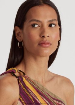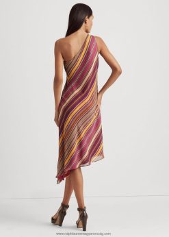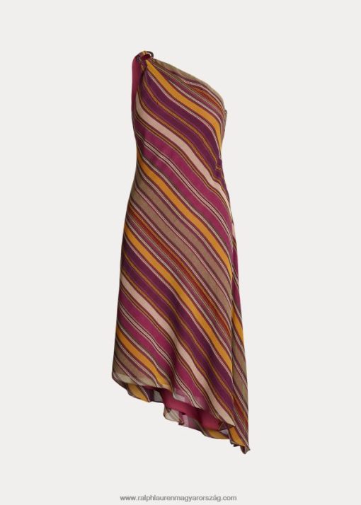 csíkos georgette egy vállú ruha 2680483801 nők Ralph Lauren fukszia/tejszín/multi