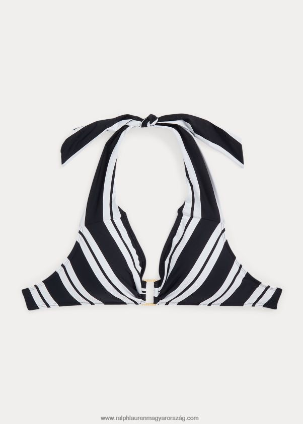 csíkos gyűrűs elülső kötőfékű bikinifelső 2680484188 nők Ralph Lauren fekete-fehér