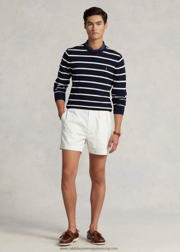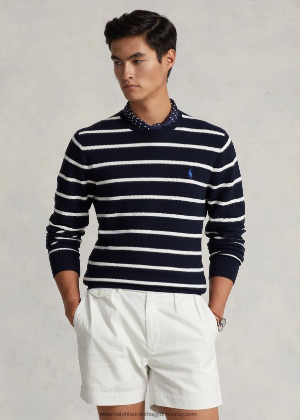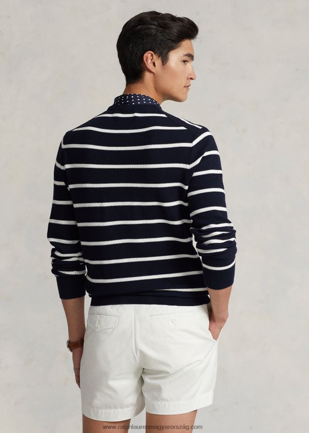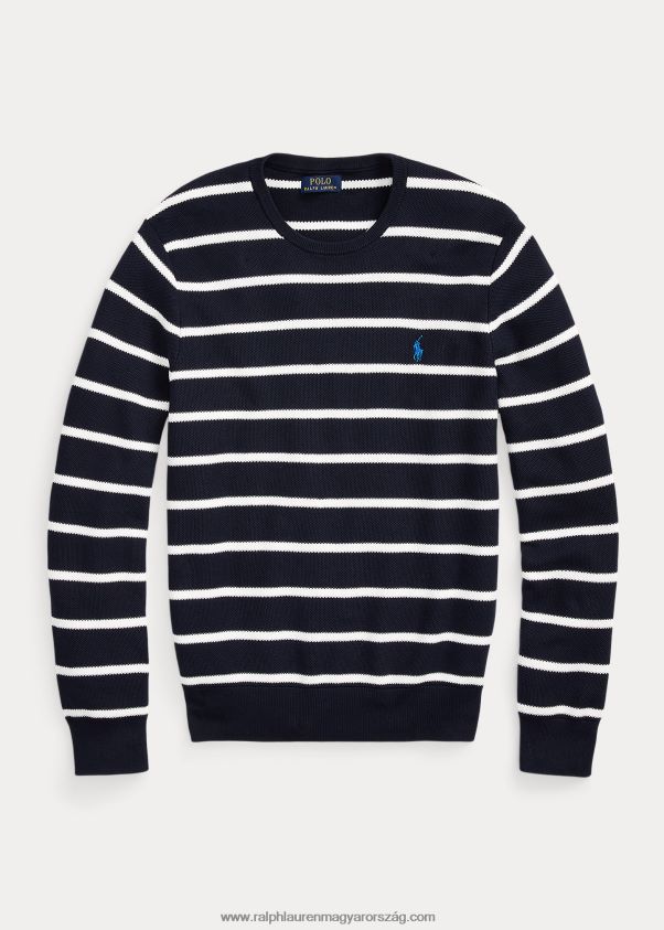 csíkos hálós kötésű pamut pulóver 268048755 férfiak Ralph Lauren vadásztengerészet kombó