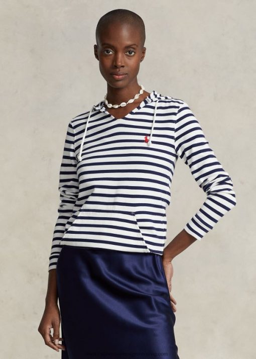 csíkos jersey kapucnis póló 2680483037 nők Ralph Lauren trófea krém/finomított tengerészkék