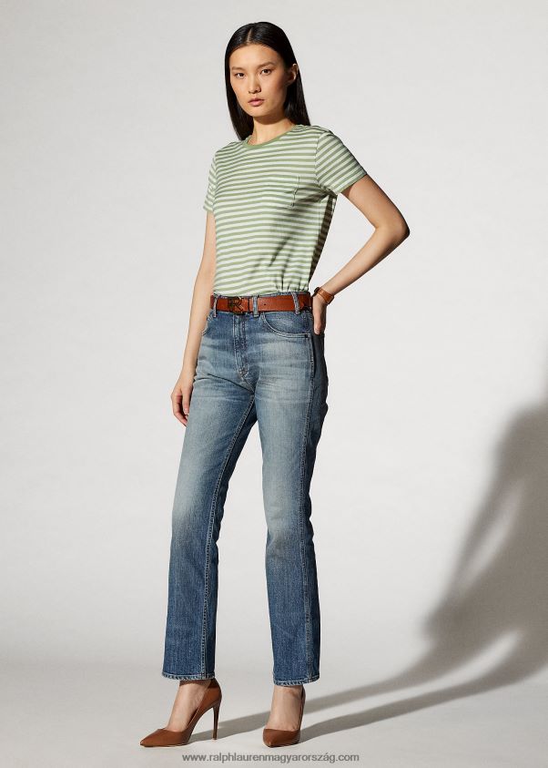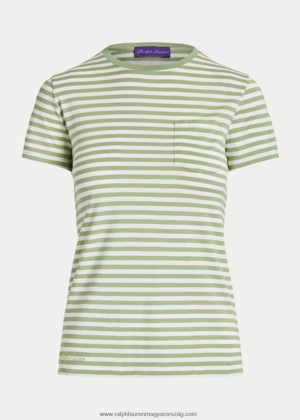 csíkos nyakú zsebes póló 2680489126 nők Ralph Lauren menta/törtfehér