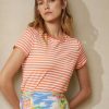 csíkos nyakú zsebes póló 2680489129 nők Ralph Lauren mákos narancs/törtfehér