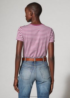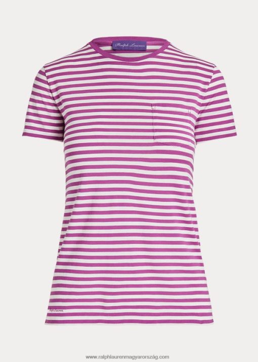 csíkos nyakú zsebes póló 2680489130 nők Ralph Lauren fényes bogyó/törtfehér
