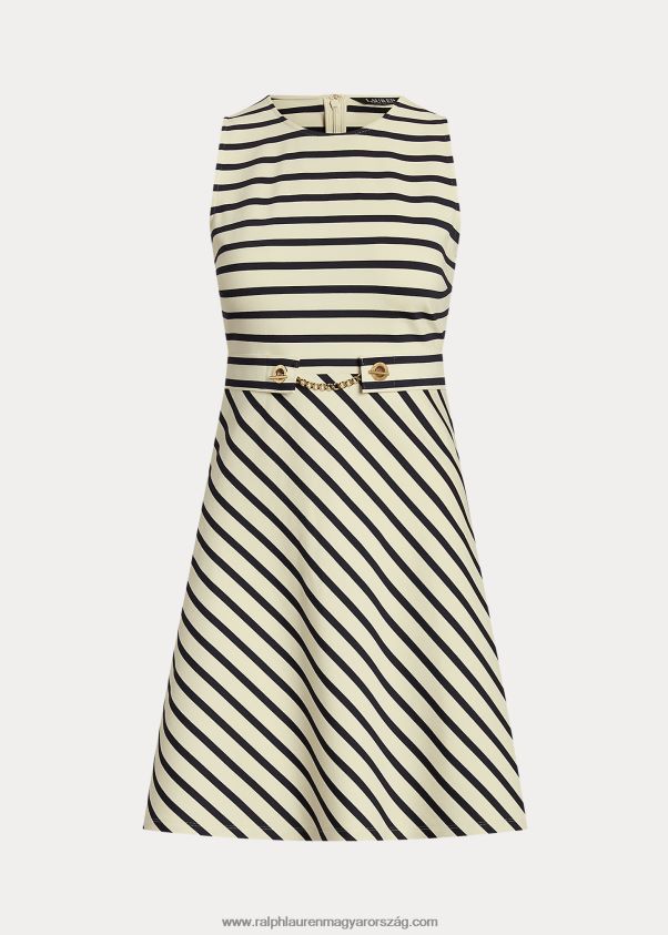 csíkos öves ponte ruha 2680484002 nők Ralph Lauren mascarpone krém/tengerszín