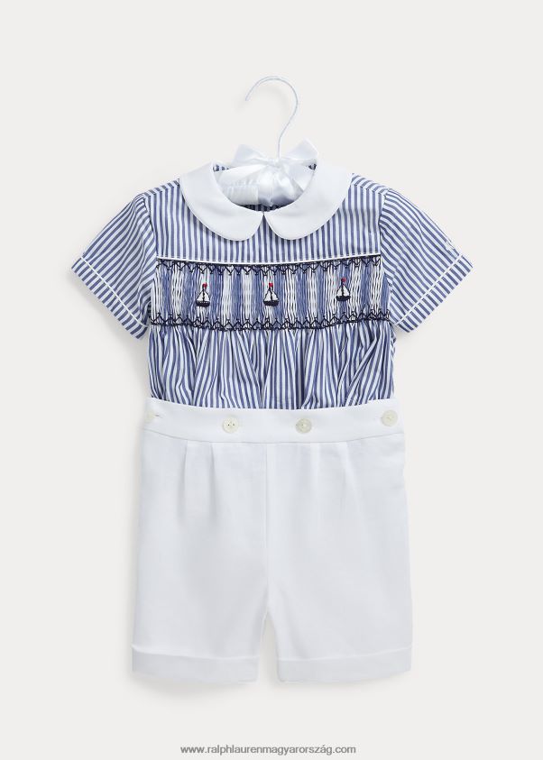 csíkos pamut ing és vászon rövid szett 2680487807 baba Ralph Lauren sötétkék/fehér