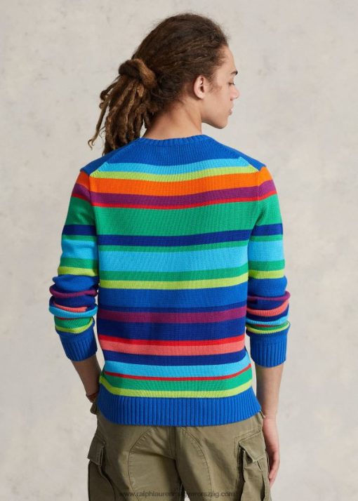 ez a közepes súlyú pamutpulóver csíkos mintával rendelkezik a szezon élénk színpalettáján. A ralph lauren jobb gyapottal együttműködve javítja a gyapottermesztést világszerte. a jobb gyapot arra tanítja a gazdálkodókat, hogy hatékonyan használják fel a vizet, gondoskodjanak a talaj és a természetes élőhelyek egészségéről, csökkentsék a legkárosabb vegyszerek használatát, és hajtsák végre a tisztességes munka elveit.