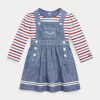 csíkos pamut póló és poplin nadrág szett 2680488213 baba Ralph Lauren chili paprika multi