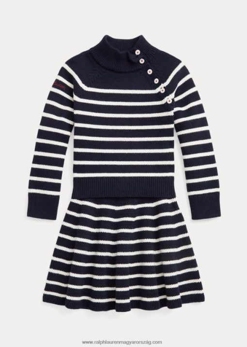 csíkos pamut pulóver és szoknya szett 2680487449 gyerekek Ralph Lauren rl haditengerészet/klubházi krém