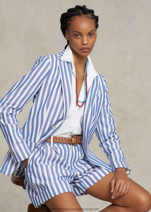csíkos pamut-vászon dobby blézer 2680483086 nők Ralph Lauren kék/fehér napellenző csík