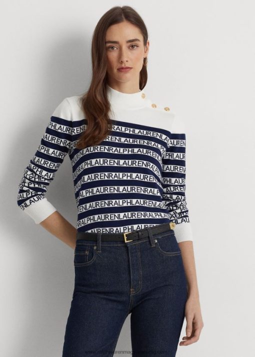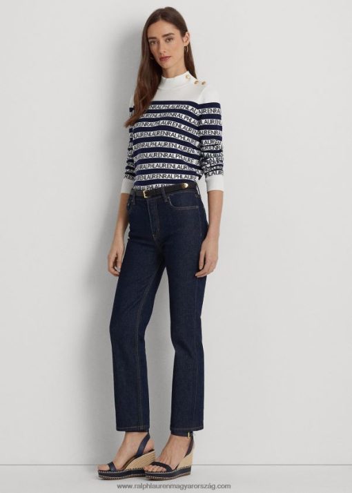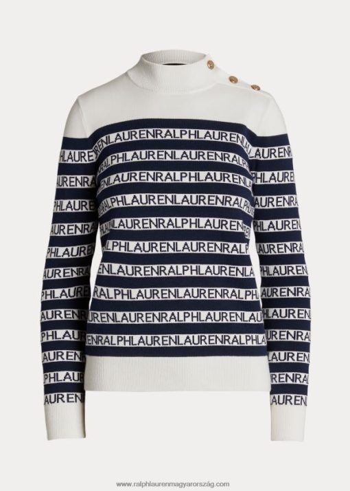 csíkos pamutkeverék álnyakú pulóver 2680484901 nők Ralph Lauren fehér/rafinált sötétkék