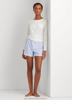 csíkos pamutkeverék aludj röviden 2680484221 nők Ralph Lauren kék csík