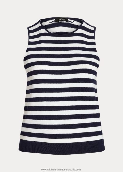 csíkos pamutkeverék ujjatlan pulóver 2680484785 nők Ralph Lauren rafinált sötétkék/fehér