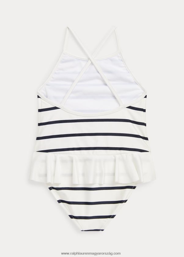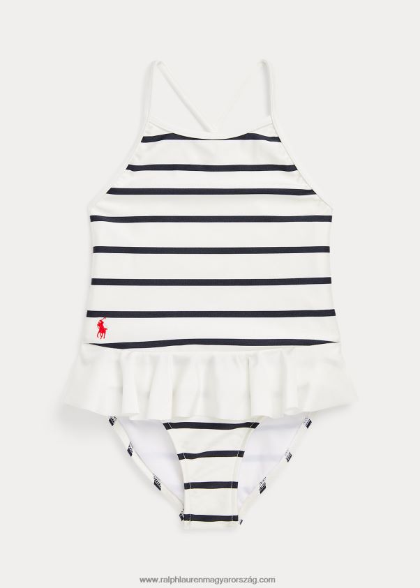 csíkos sztreccs egyrészes fürdőruha 2680487342 gyerekek Ralph Lauren fedélzetmosó fehér/tengerszínkék