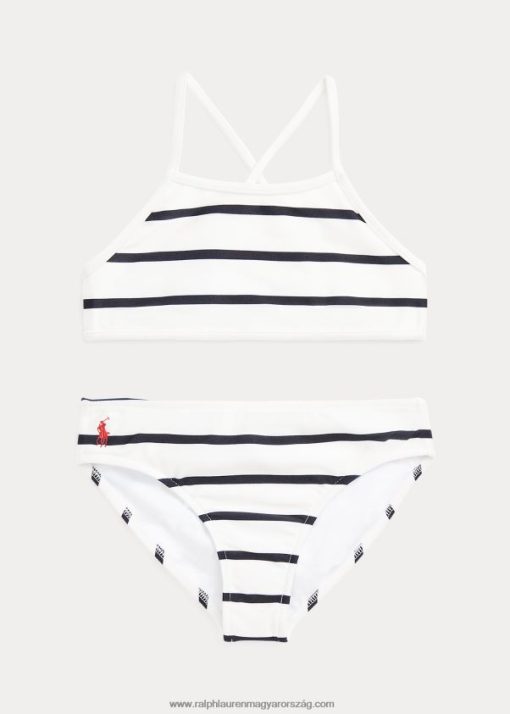 csíkos sztreccs kétrészes fürdőruha 2680487341 gyerekek Ralph Lauren fedélzetmosó fehér/tengerszínkék