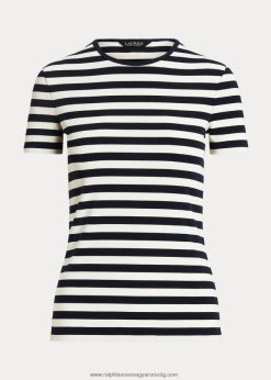 csíkos sztreccs pamut póló 2680484388 nők Ralph Lauren finomított sötétkék/krém